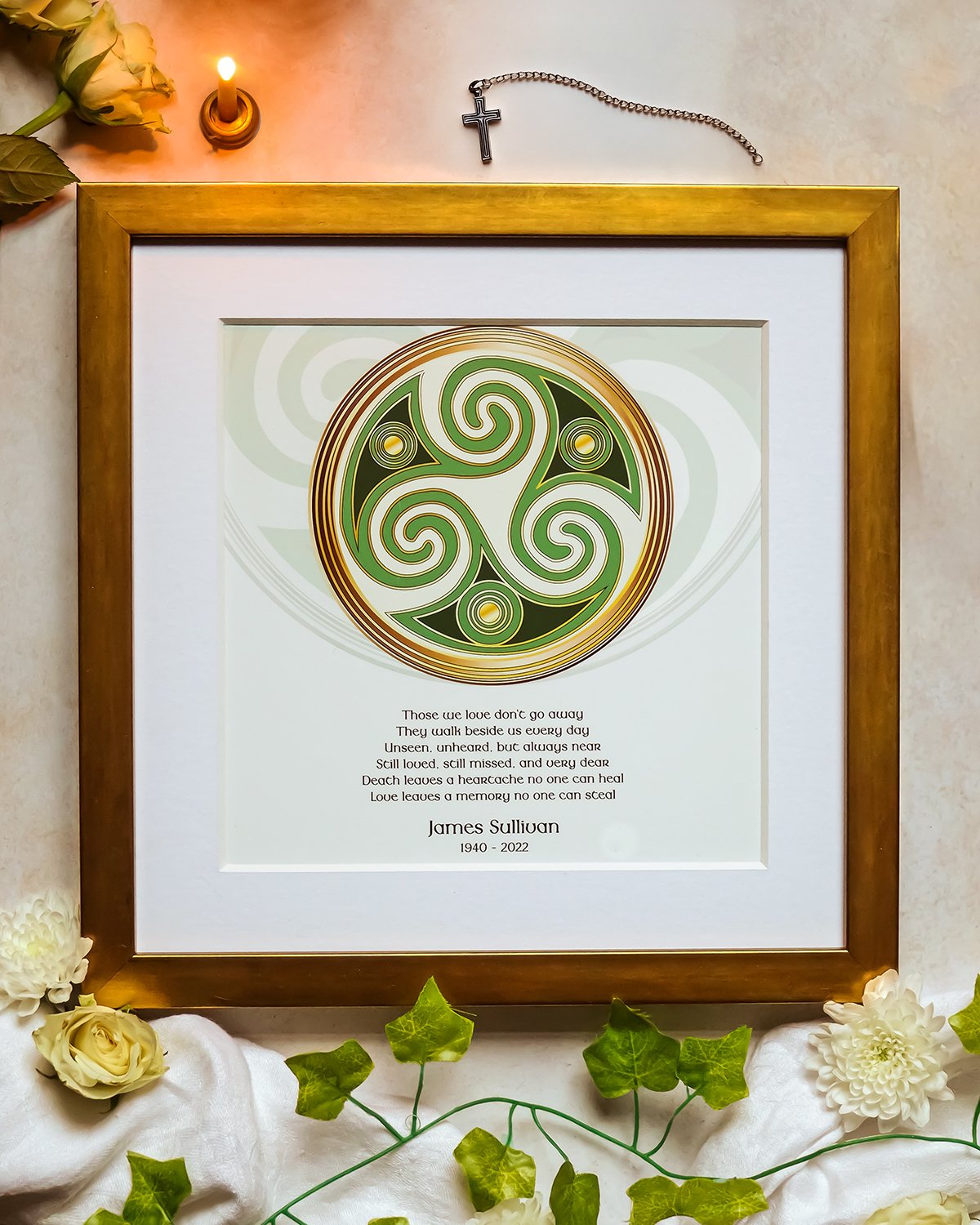 Personalized Celtic-inspired framed prints and canvases, with your chosen Irish blessing for life’s special moments — weddings, anniversaries, remembrance, and new beginnings. Thoughtfully crafted in Ireland, a timeless piece to treasure in any home.